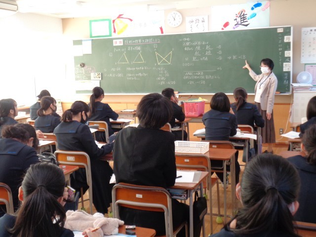 2年生の数学です。数学は、図形を学習している学年が多いようですね。