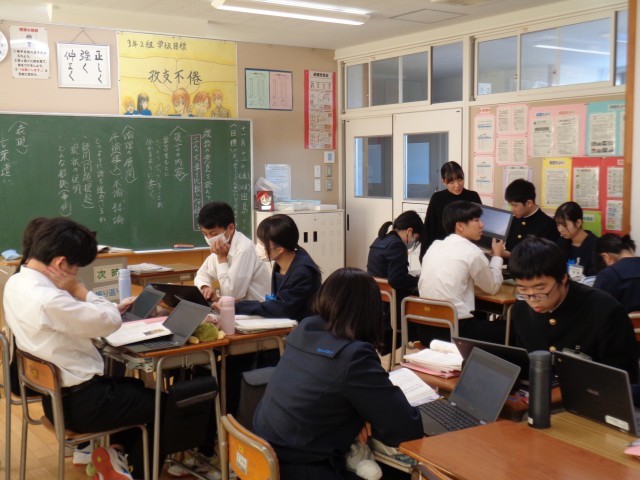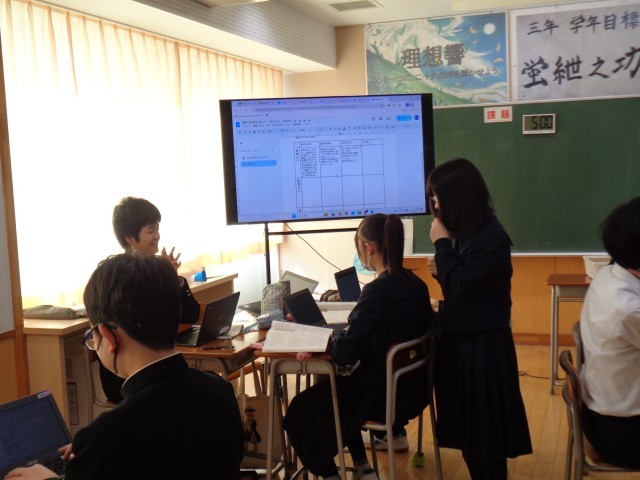 3年生の国語です。クロムブックを使って意見交換をしています。