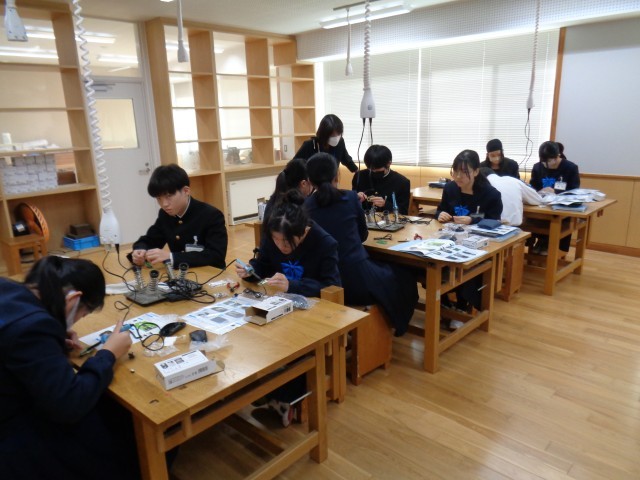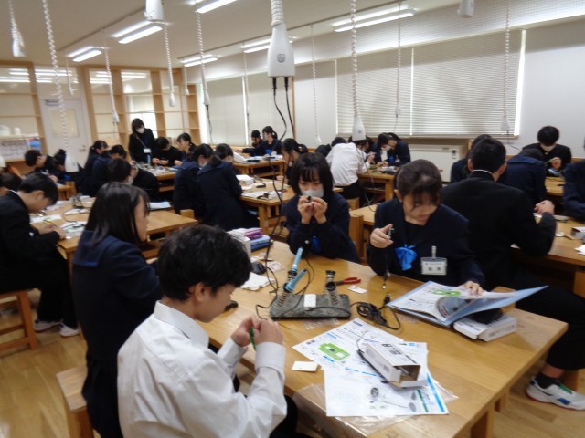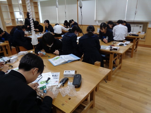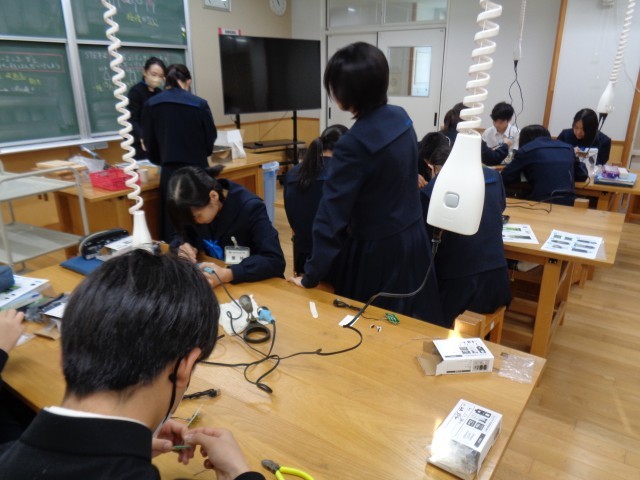 2年生の技術家庭科です。はんだ付けをしていました。すごい集中力です!
