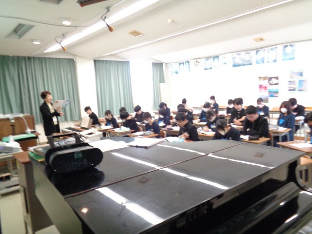 3年生の社会と音楽です。社会は、公民。音楽は楽譜を見ながら歌を歌っていました。ちょっと難しそう?