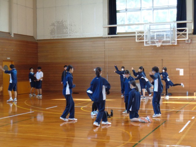 2年生の保健体育です。グループごとにダンスを考えています。今日は欠席者が多いようです。インフルエンザ等にならないように、体調管理をしましょう。
