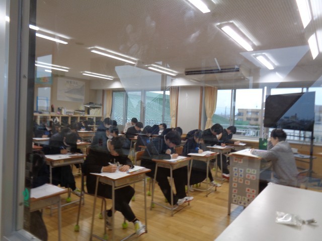 3年生は確認テスト2日目です。今日は2教科です。真剣に取り組んでいます。
