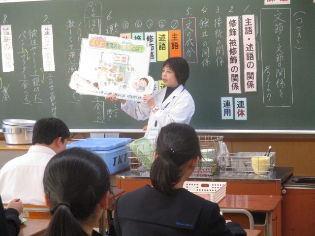 先週に引き続き、南給食センターから栄養教諭が来校し、食に関するお話をしてくださいました。