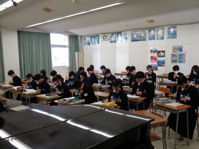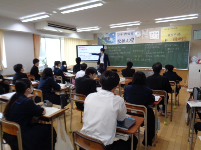 3年生の社会と音楽です。社会では、生活に役立つお話がされています。みんな集中して聞いています。