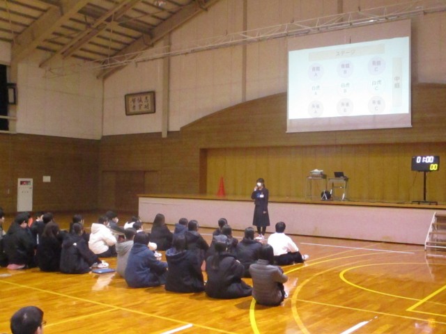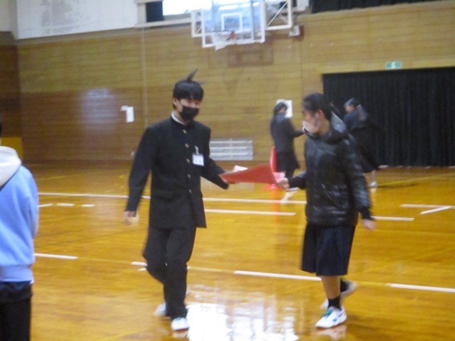 12/15(月)に生徒会執行部が企画・運営した「大中フェスティバル」を行いました。副題に「最後の三つ巴戦」として、体育大会の3団に分かれクイズ・お玉レースで競いました。学年の枠をこえて楽しく参加し、より絆が深まりました。