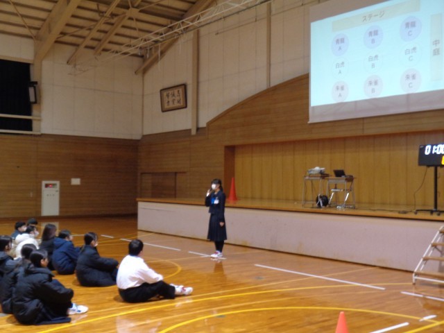 6限に全校生徒で大中フェスティバルが開催されました。執行部が考えたクイズやレースで楽しい時間を過ごしました。体育大会3団での最後のレクリエーションはとても盛り上がりました。