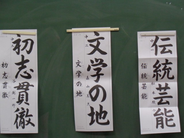 1~3年生の書初め手本です。今日は全校頑張って練習しました。書初め大会当日までしっかり練習しましょう。