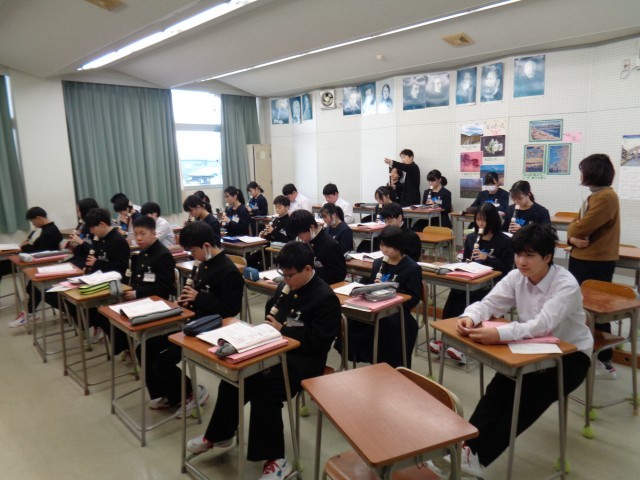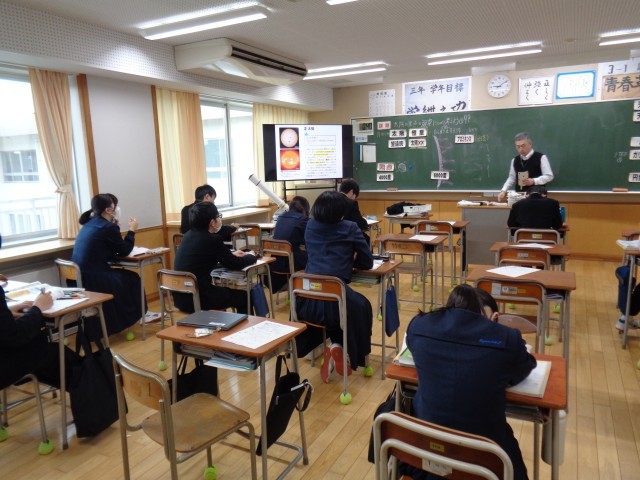 3年生の理科、社会、2年生の技術・家庭科、1年生の音楽の様子です。3年生は、私立高校の推薦選抜が行われています。