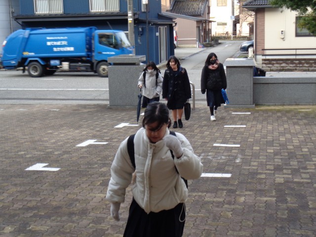 1月15日(木)登校の様子 公開日 2026/01/15 更新日 2026/01/15 今日の大中 登校の様子です。雪がないので、安全に登校できる日が続いています。寒いので体調に気を付けましょう。保健委員会では、換気の予備明けを毎日継続しています。 +2 今日の大中