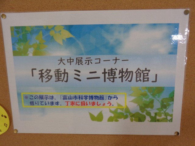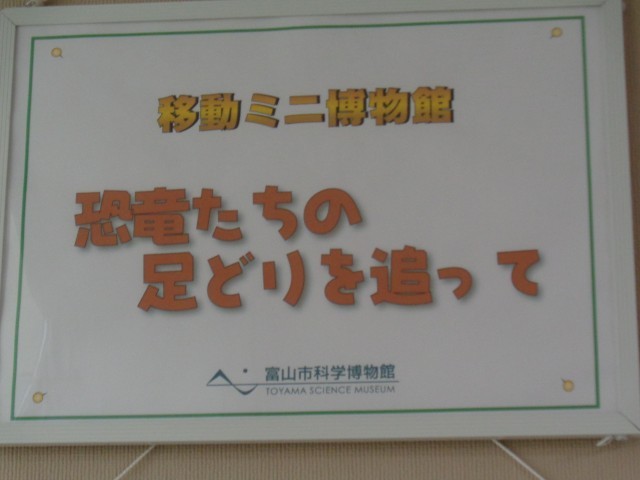 移動ミニ博物間のコーナーの新しい展示が始まりました。今回のテーマは恐竜です。楽しい展示なので、皆さん見てくださいね。