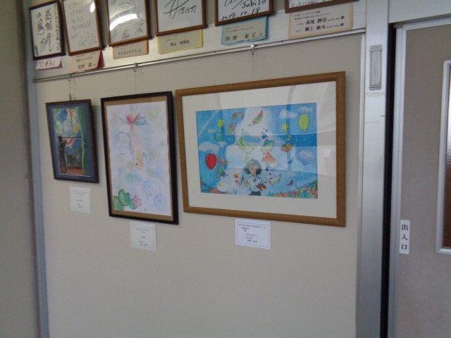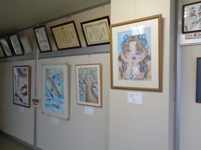 校長室前の絵の展示が変わりました。美術部の生徒は、たくさんの作品を描いています。