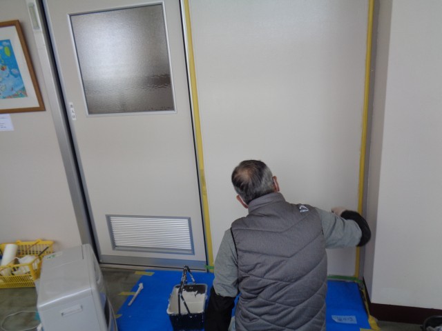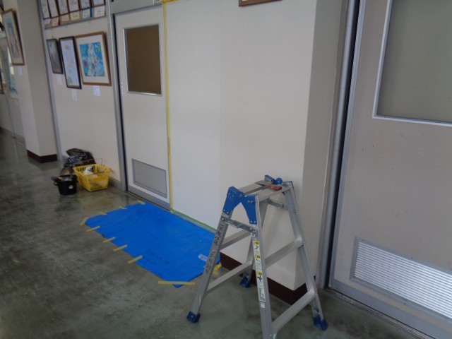 校長室の入り口の扉がきれいになりました。今日は、その横の壁のペンキを塗っていただきました。ありがとうございます。