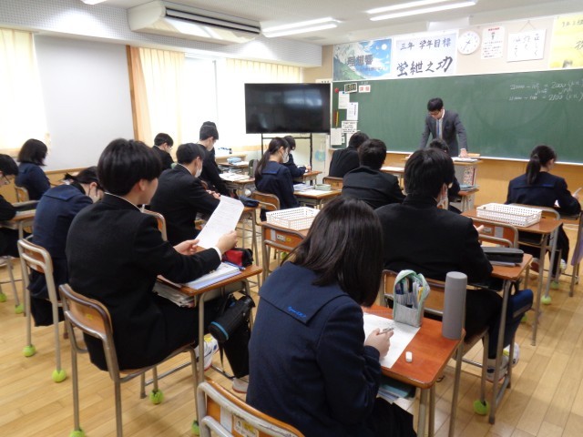 3年生の社会と音楽です。卒業まであと少しとなりました。授業もあと少しです。今週は私立高校一般入試が行われます。体調を整えておきましょう。