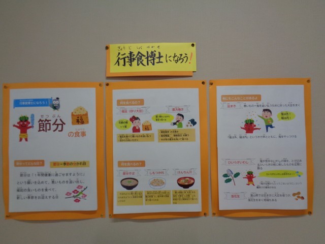 図書委員会の「あなたの気になる1冊は?」と給食委員会の「行事博士になろう」の掲示です。立ち止まってゆっくり掲示物を見てくださいね。