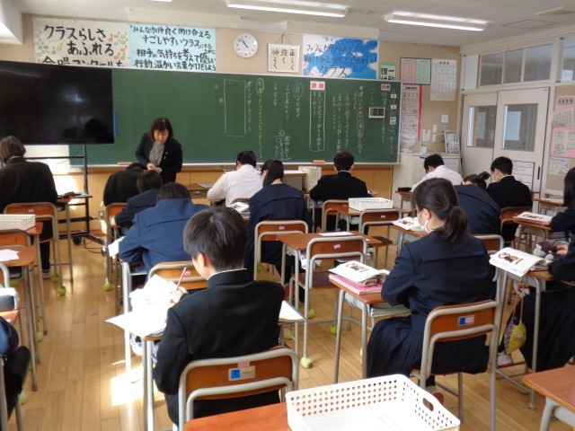 1年生の国語です。落ち着いてしっかりと授業に取り組んでいます。