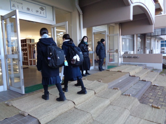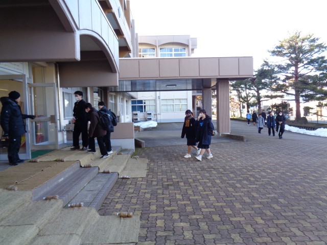 登校の様子です。今日から学年末考査が始まります。少し早めに登校してくる生徒が多いようです。