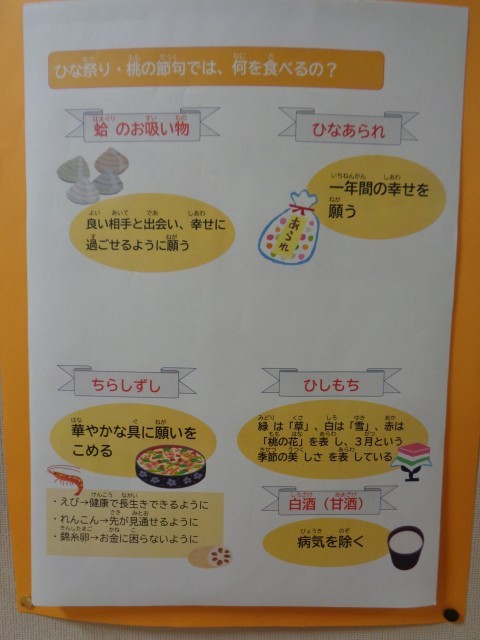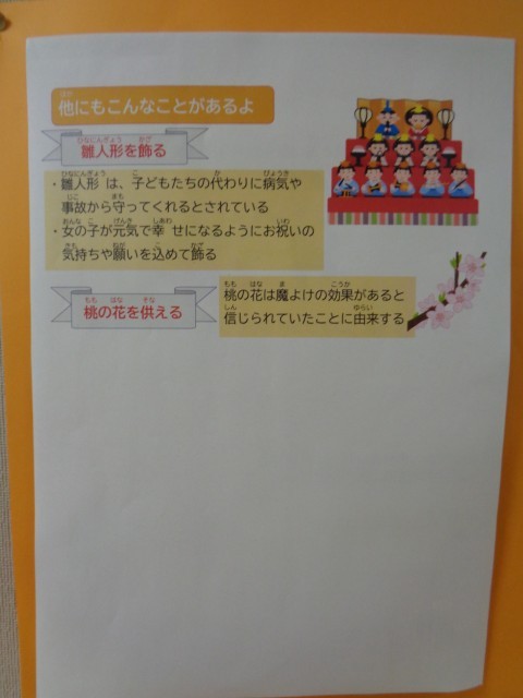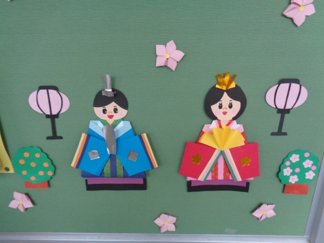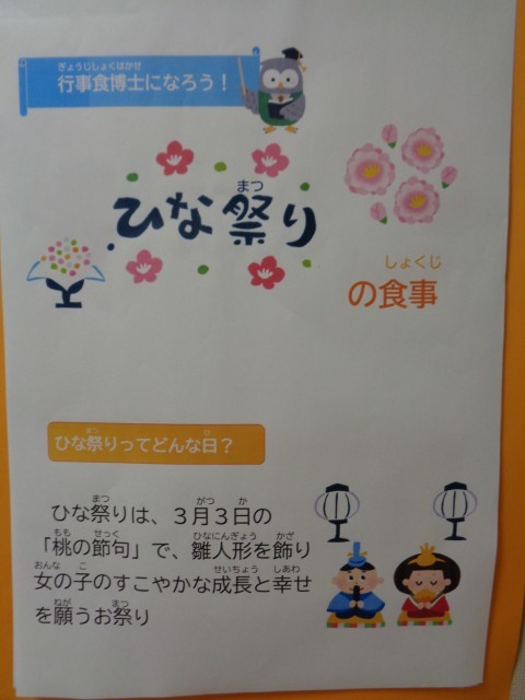 今日はひなまつりです。校内にもひな祭りの掲示があります。