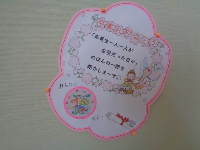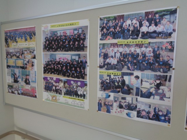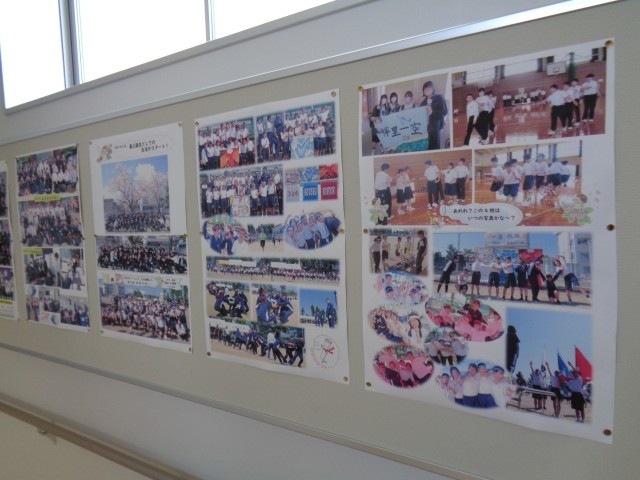 卒業生へのメッセージや思い出の写真の掲示が校内に増えました。