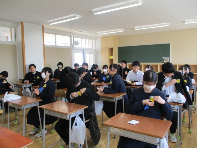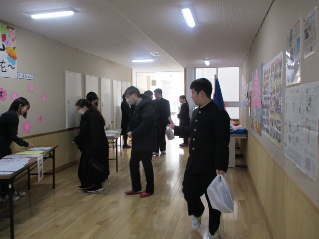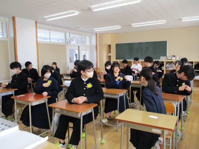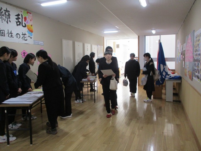保護者受付、卒業式前の学活の様子です。