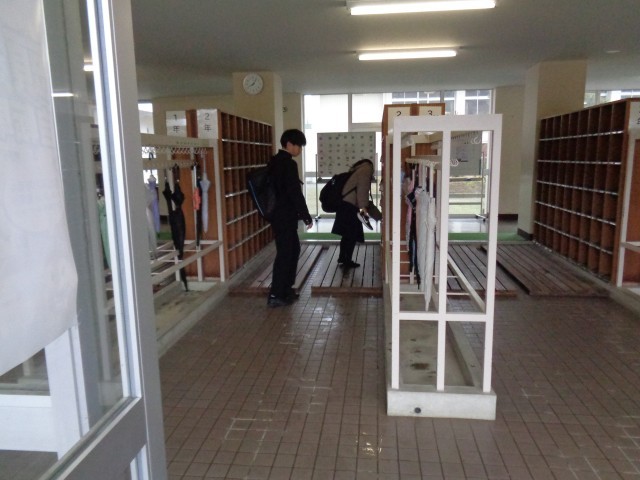 3月19日(木)今朝の様子 公開日 2026/03/19 更新日 2026/03/19 今日の大中 登校の様子です。今朝は雨が降っています。傘のしずくを落として校内に入っています。素晴らしいですね。 +1 今日の大中