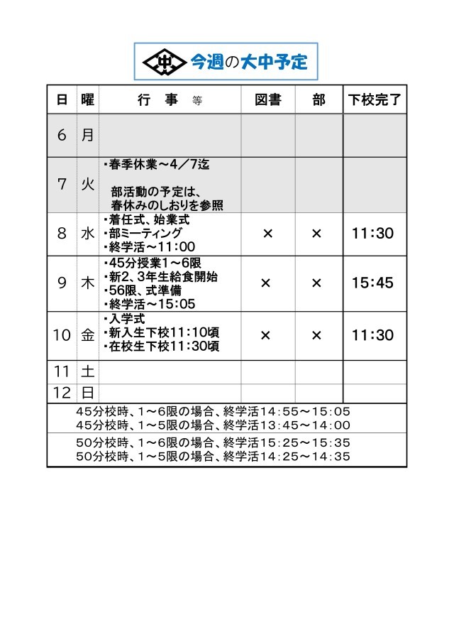 | 日 | 月 | 火 | 水 | 木 | 金 | 土 |