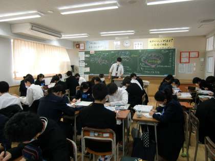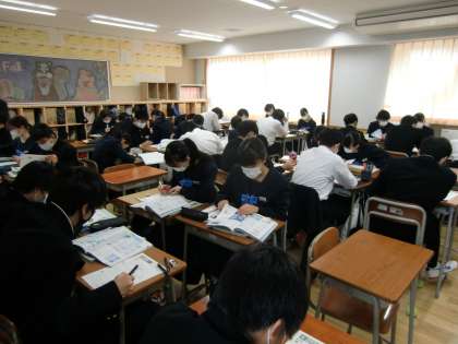 理科の授業では、期末考査に向けて天気の変化のところをプリントで復習していました。