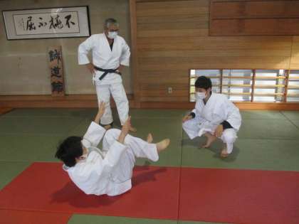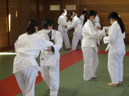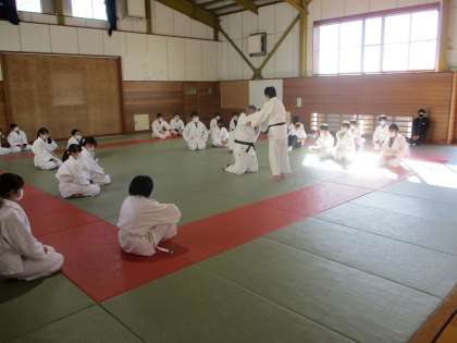 全学年、県柔道連盟より講師の先生に来ていただき、柔道の授業を進めています。今年度は感染症対策のため、「手指の消毒、換気、マスクの着用」をしながら授業を行っています。