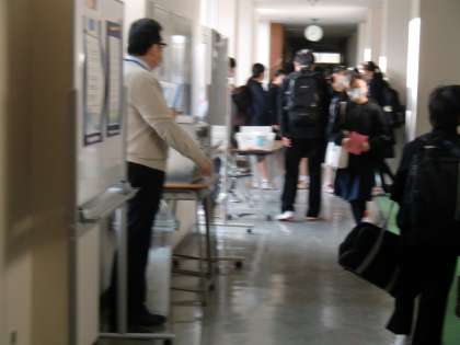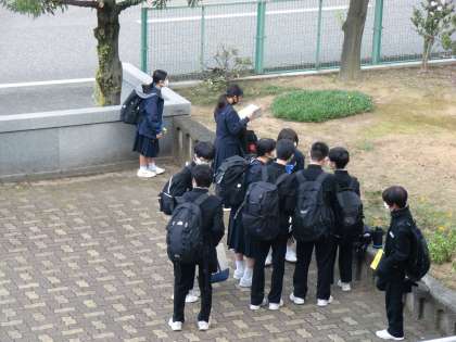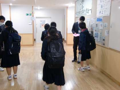 今日から期末考査です。生徒玄関解錠前の時間を有効に使って学習しています。