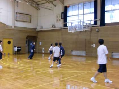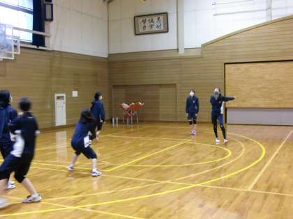 体育館の部活動です。バスケットボール部(写真上)、バレーボール部(写真中)、バドミントン部(写真下)です。