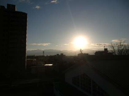今朝は久しぶりにいい天気です。日の出の時刻がずいぶん遅くなりました。時刻だけでなく、日の出の場所が季節によって変化しています。気付いていますか?南に移動していますよ。