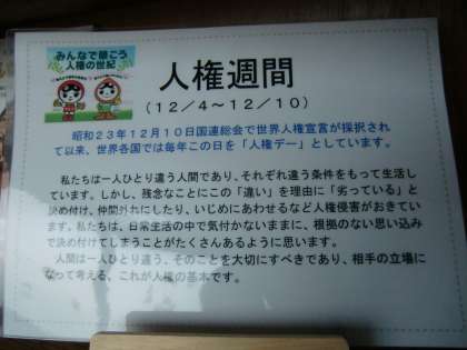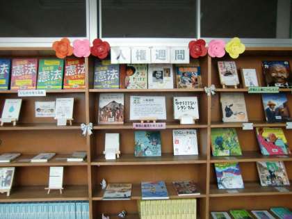 図書室前には、人権週間に関連する本が展示されました。人権について考える1週間にしましょう。