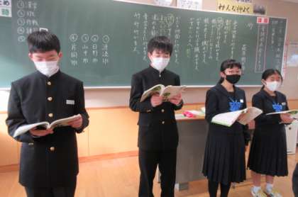グループで話し合い、分担を決めて音読しました。詩の内容を読み取り、工夫しました。