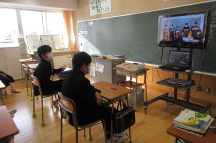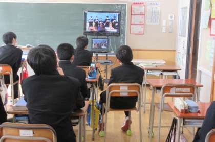 音読発表会のムービーを見て、振り返りました。たくさんの生徒が「みんなで工夫して音読したことがとても楽しかった」と話していました。