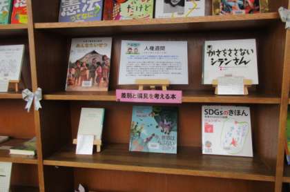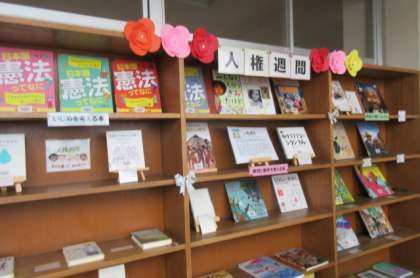今日から人権週間です。図書室前にも人権に関する本がたくさん紹介されています。