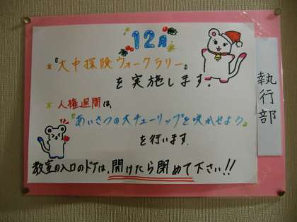校内に「ひらがな」が貼ってあります。生徒会執行部の企画「大中探検ウォークラリー」のものです。校内を巡って探してみましょう。