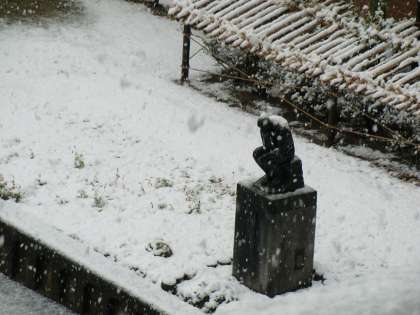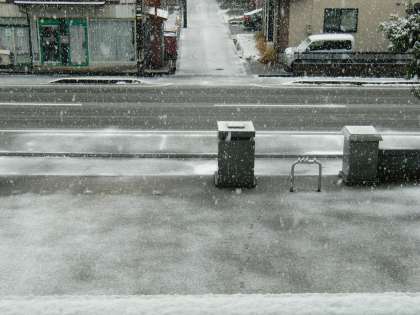 みぞれから雪に変わってきました。周辺は積雪がみられます。