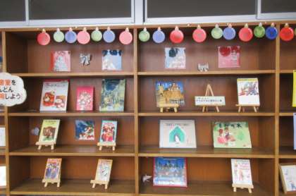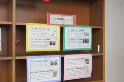 図書室前はクリスマスに関する本や今年のニュースが掲示されています。みなさん、図書室に来て、冬休み前に本を借りましょう!