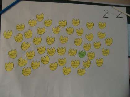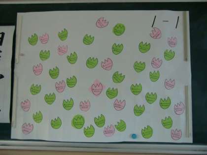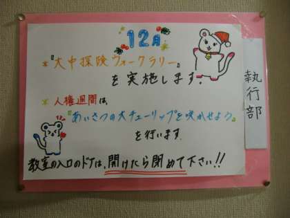 生徒会執行部による活動のあいさつの大チューリップがたくさん咲いています。