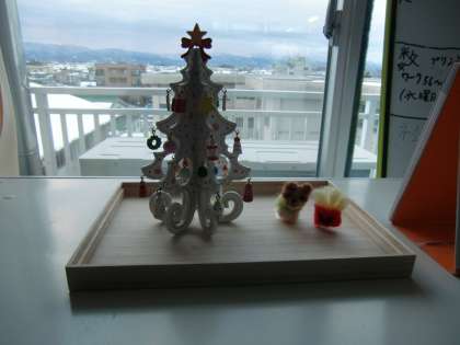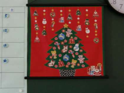 教室にクリスマスの飾り付けがしてあります。今年のプレゼントは??