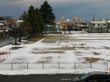 先日積もった雪が、かなり溶けています。グラウンドの土が見えてきています。