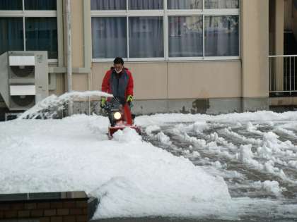 新年の始まりは、除雪でした。職員で正面玄関前、生徒玄関前を除雪しました。始業式までに溶けるといいですが・・・