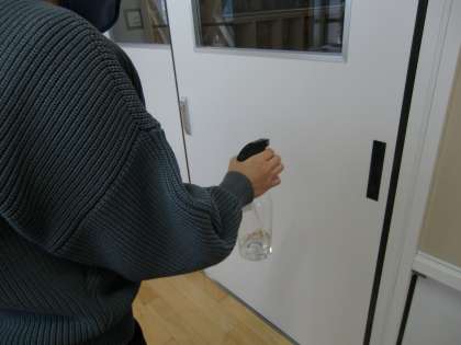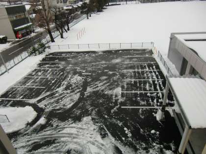 明日から生徒の活動が始まります。3年生の面接練習があるので、手すりや入り口の消毒作業をしました。また、駐車場の除雪も行いました。