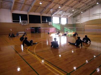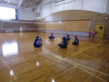 今日は今年初めての部活動です。消毒や検温の後、寒いのでしっかり準備体操をしてから活動します。体育館はワックスがけをしたので気持ちよく使えますね。