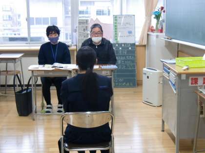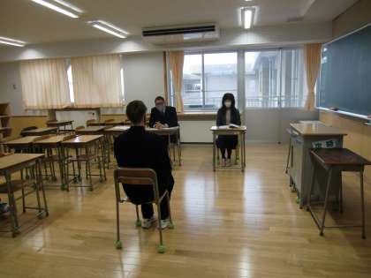 昨日に引き続き今日も、3年生の面接練習をしています。