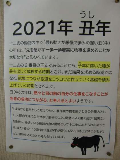 丑年は「先を急がず、一歩一歩着実に物事を進めることが大切な年」と言われています。目標を決めて、始業式に元気な顔を見せてくださいね。