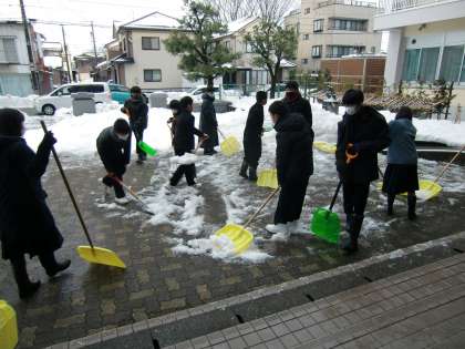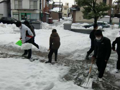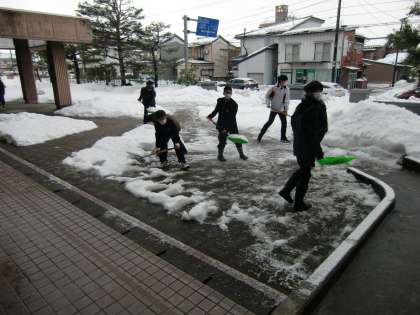 今日の除雪は1年生です。生徒玄関前の雪があっという間になくなりました。ありがとうございます!!