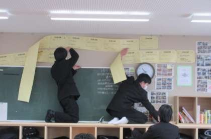教室に「3学期の目標」を掲示しました。先輩になる準備期間です。「真の力」をつけていこう!