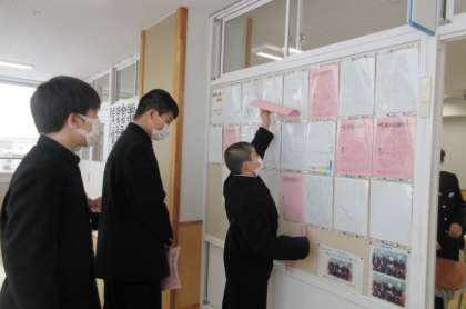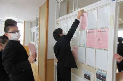 新年の決意を掲示しました。係以外の生徒も手伝ってくれました。1年生もあと3ヶ月で先輩になります。すてきな先輩になれそうですね。