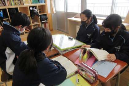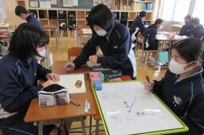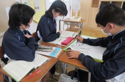 小説を読んで人物相関図をつくりました。班ごとに話し合い、全体で発表しました。