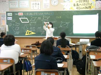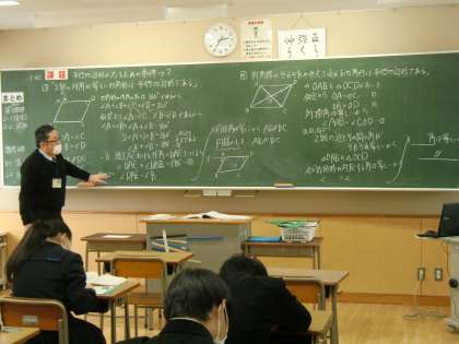 数学は、少人数での授業をしています。平行四辺形の学習をしています。